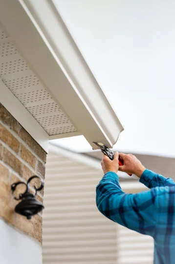 - Gutter Repairs: Our gutter repair services address leaks, sagging sections, separated joints, loose fasteners, and improper drainage conditions. We identify the root cause of the issue and apply corrective solutions that restore system efficiency. Timely repairs help prevent water damage to siding, fascia, soffits, foundations, and landscaping while extending the lifespan of your existing system.